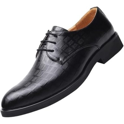 Men’s Low Heel Derby Oxfords Dress Shoes, Pointed Toe Lace-up Comfort Oxford Dress Formal Wedding Gentleman Shoes