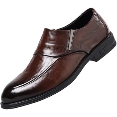 Formal Shoes Dress Oxford for Mens Leather Classic Slip-on Breathable Prom Wedding Non Slip Block Heel Anti-Slip Slip Resistant