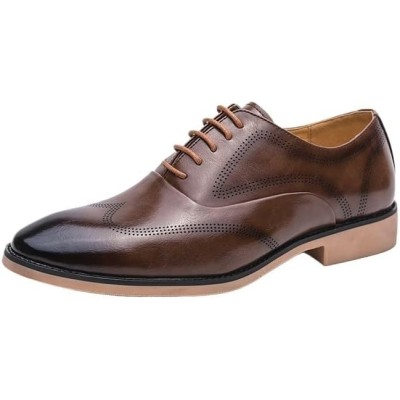 Formal Oxford Shoes for Men's Fashion Lace Up Evening Brogue Burnished Leather Business Tuxedo Wedding Heel Non Slip Anti-Slip
