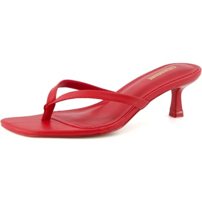 Women's Miami Kitten Heels Sandals Square Open Toe Thong Sandal Flip Flop Heels +Memory Foam Heeled Sandals for Women