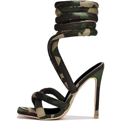 Camo Rope Lace Up Heels for Women Sexy Camo Sandals with Straps Chic Open Toe Stiletto Heel for Fashion Forward Elegance Shoes