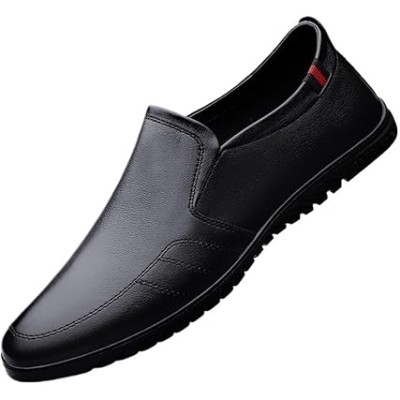 Dress Shoes for Men Waterproof Leather Casual Slip-on Breathable Prom Wedding Tuxedo Slip Resistant Block Heel Anti-Slip Rubber