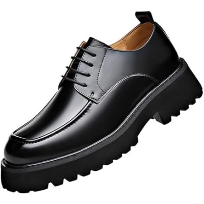 Men's Leather Lace Up Platform Block Heel Business Oxford Shoes Lug Sole Non-Slip Platform Wedding Work Dress Shoes for Men