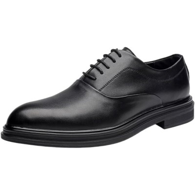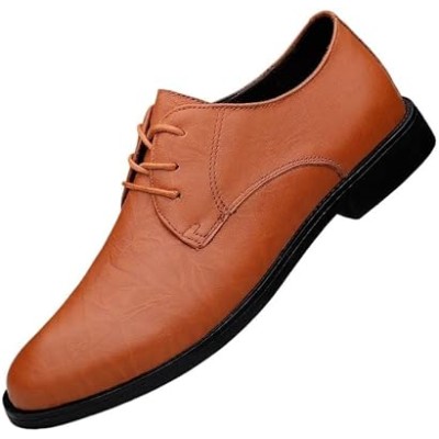 Men's Leather Oxford Dress Shoes, Classic Business Formal Shoes for Men Lace-Up Comfortable Fashion Pointed Toe Low Heel Derby