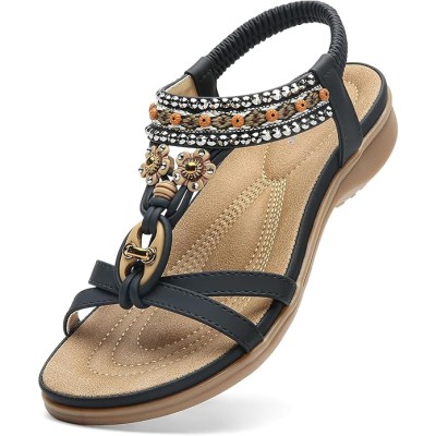 Womens Sandals Arch Support Summer Beach Sandals Comfort Walking Shoes Bohemian Flip Flops Sandals for Women