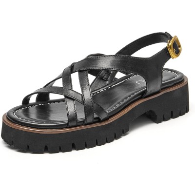Gladiator Sandals for Women,Platform Strappy Sandals for Women,Chunky Casual Open Toe Slip on Leather Shoes,Lightweight Ankle