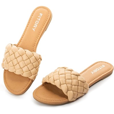 Womens Flat Sandals Fashion Round Open Toe Slip On Slides with Braided Strap Slippers for Summer Size 6-11