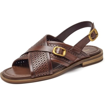 Flat Sandals for Women,Wide Cross Band Sandals for Women,Leather Comfortable Sandals,Summer Open-Toe Sandals for Beach Walking