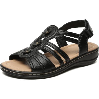 Womens Sandals Flats Comfort Leather Walking Orthopedic Sandals Casual Summer Shoes with Arch Support for Dressy Beach Hiking
