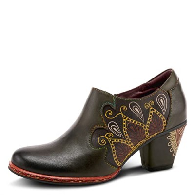 Womens Rockdale Embroidered Square Toe Casual Boots Mid Calf Low Heel 1-2" - Brown