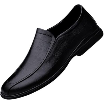 Men's Dress Oxford Shoes - Slip-On Pointed Toe Leather Formal Shoes, Burnished Finish, Anti-Slip Rubber Sole, Low Block Heel,