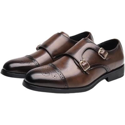 Mens Dress Oxford Double Monk Shoes Prom Wedding Block Heel Casual Shoe Uniform Breathable Genuine Height Increasing Leather