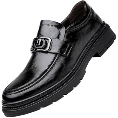 Mens Oxford Shoes Faux Leather Business Slip-on Plain Toe Anti-Slip Non Slip Rubber Sole Block Heel Prom Wedding