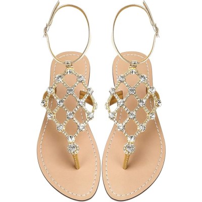 Women's Rhinestone Flat Sandals T-Strap Thong Sandals Summer Flat Sandals Flip Flop Sandals for Women