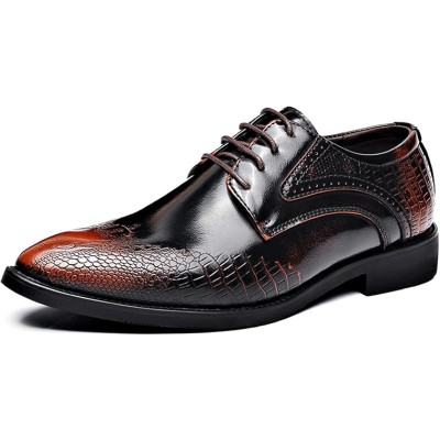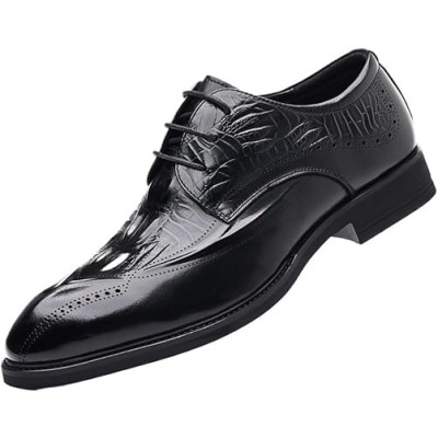 Formal Oxford Shoes for Men's Fashion Lace Up Evening Brogue Burnished Leather Business Tuxedo Wedding Heel Non Slip Anti-Slip