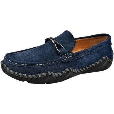 Men Shoes Suede Vamp Comfor Solid Color Anti-Slip Rubber Sole Slip Resistant Block Heel Prom Wedding Slip-on(Blue,11.5)