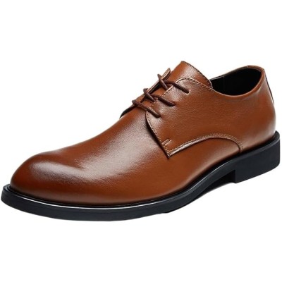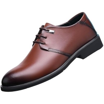 Dress Oxford for Men Men's Brown Leather Dress Shoes Lace-Up Pointed Toe Low Top Block Heel Non-Slip Wedding Shoes New