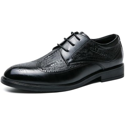 Luxury Mens Business Genuine Leather Shoes Fashion Wedding Oxfords Pointed Toe High Heels Black Brogues Dress Shoes