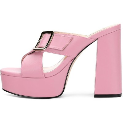 Womens Dating Dress High Heel Slip On Comfortable Chunky Open Toe Heels Platform Matte Block Heeled Sandals Shoes 4.7 Inch