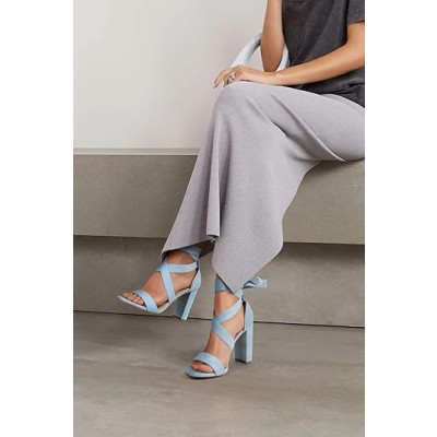 Heels Sandals for Women Open Square Toe Strappy Lace Up Heels Ankle Strap High Chunky Block Heeled Sandals