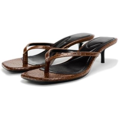 Women's Miami Kitten Heels Sandals Square Open Toe Thong Sandal Flip Flop Heels +Memory Foam Heeled Sandals for Women