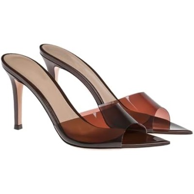 Women's Clear Pointed Open Toe Stiletto Heel Slide Sandals Fashion Sexy Slip On Transparent Strap High Heels Mules Summer