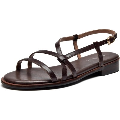 Flat Sandals for Women,Strappy Sandals for Women,Comfortable Leather Summer Sandals,Adjustable Casual Dressy Sandals with Open