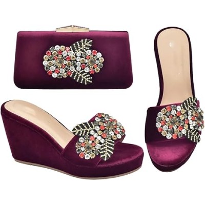 Wedge heels 9.5cm hand bag hand bag shoe bag set(D,38)