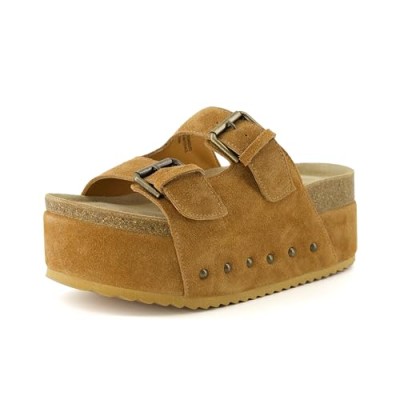 Guru Platform Sandals Women Footwear – Comfortable Genuine Leather Footbed Studded Chunky Slide Summer Sandals for Women 2025