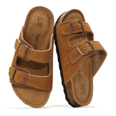 Genuine Leather Slides For Kids - Natural Cork Footbed Summer Sandals Beach Slide Sandals for Girls & Boys - Non-Slip Boys &