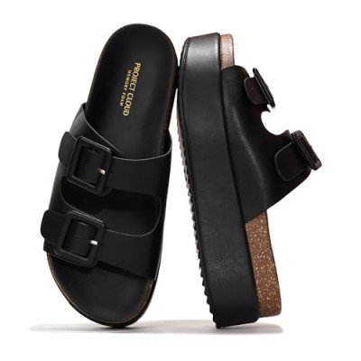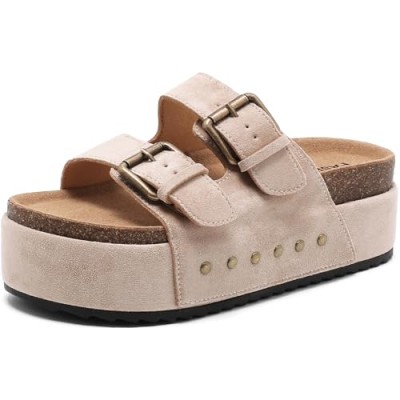 Women's Platform Clogs Sandals Cork Footbed with Comfort Double Buckles, Summer Platform Slides Mules, Summer Beach Comfort Wide