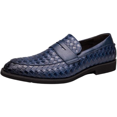 Mens Oxford Shoes Faux Leather Business Slip-on Plain Toe Anti-Slip Non Slip Rubber Sole Block Heel Prom Wedding