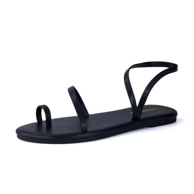 CHAI Women’s Strappy Sandals – Flat Sandals for Women, Comfortable Beach Sandals, Summer Slip-On Shoes, Casual Dressy Sandals